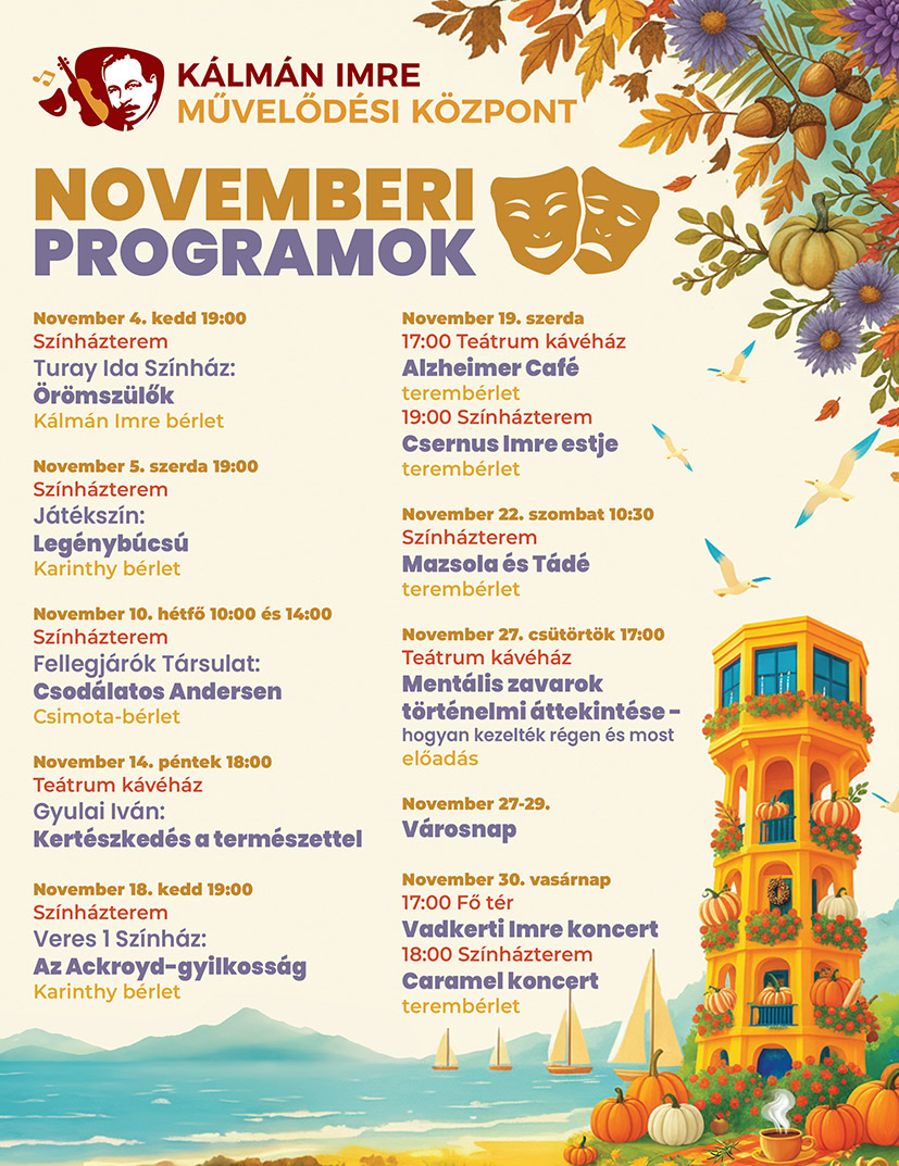 A Kálmán Imre Művelődési Központban színházi előadások és koncertek színesítik a siófoki őszt.