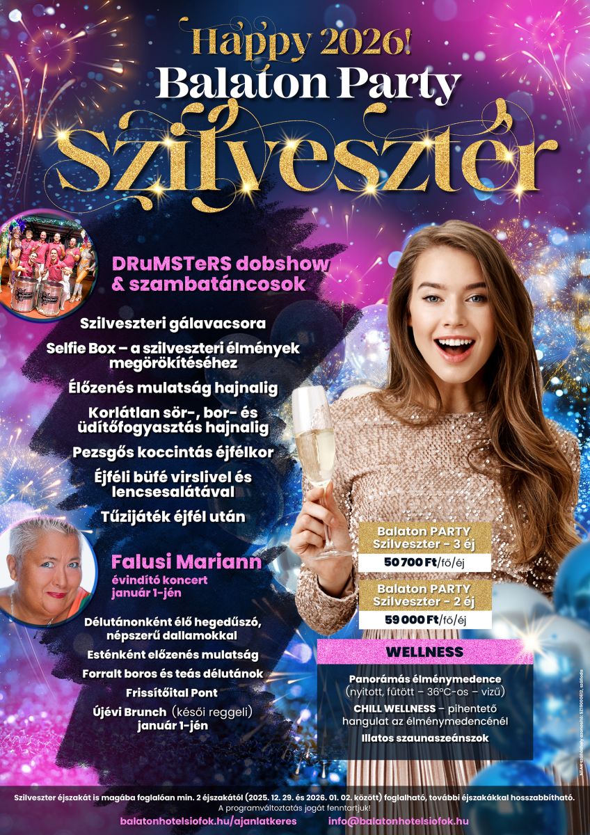 A déli part fővárosában az év utolsó napja mindig különleges. A Szilveszter Siófokon rendezvény ingyenes koncertekkel, retro bulival és pazar tűzijátékkal várja az ünneplőket a város Fő terén. Legyen szó vidám baráti összejövetelről vagy romantikus éjszakáról kettesben, Siófok ilyenkor is garantálja a fantasztikus szilveszteri hangulatot. Búcsúztassa az évet stílusosan, a Balaton téli szépségébe burkolózva!