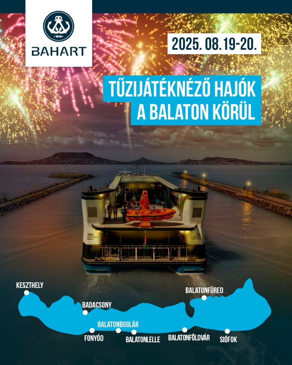 Augusztus 20-a és az azt megelőző este a Balaton körül mindig ünnepi hangulatban telik. Idén a BAHART különleges lehetőséget kínál: a tűzijátékokat nem a parton, hanem a vízről, a Balaton közepéről csodálhatod meg.